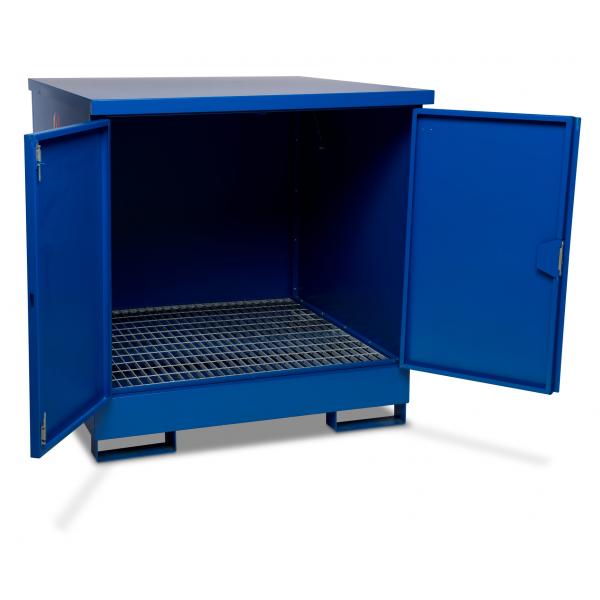 - enclosed storage and spill pallets for various containers