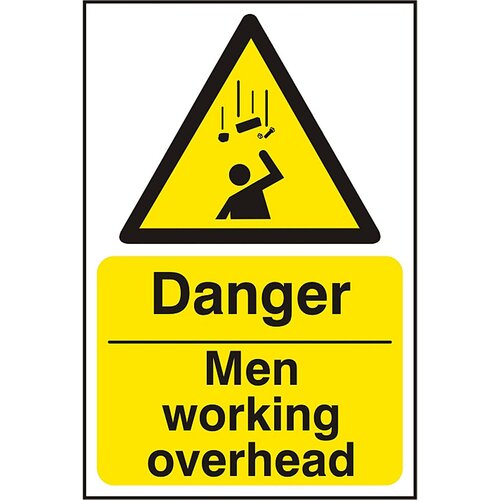 DANGER MEN WORKING OVERHEAD SIGN WHITE/YELLOW 200X300MM
