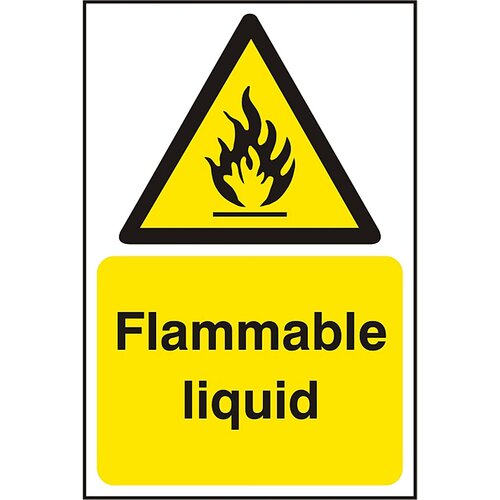 FLAMMABLE LIQUID SIGN WHITE/YELLOW 200X300MM