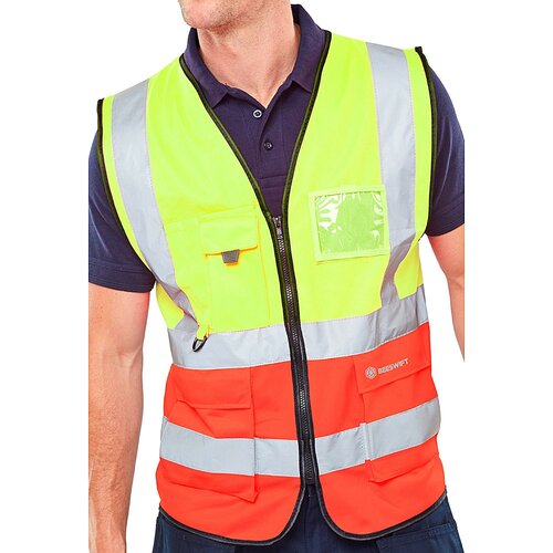 BEESWIFT HVWCTTSYRE TWO TONE HI-VIS EXECUTIVE WAISTCOAT YELLOW/RED