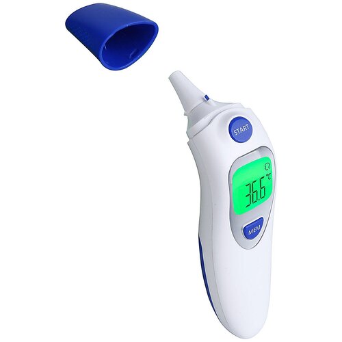 • Advantages: Sound reminder, temperature alarm, temperature measurement memory, person/object switch, automatic shutdown, C/F switch, three-colour backlight reminder, forehead temperature/ear temperature one-key switch