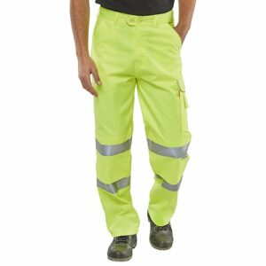 BEESWIFT PCTENSY POLY COTTON HI-VIS YELLOW TROUSERS EN ISO 20471