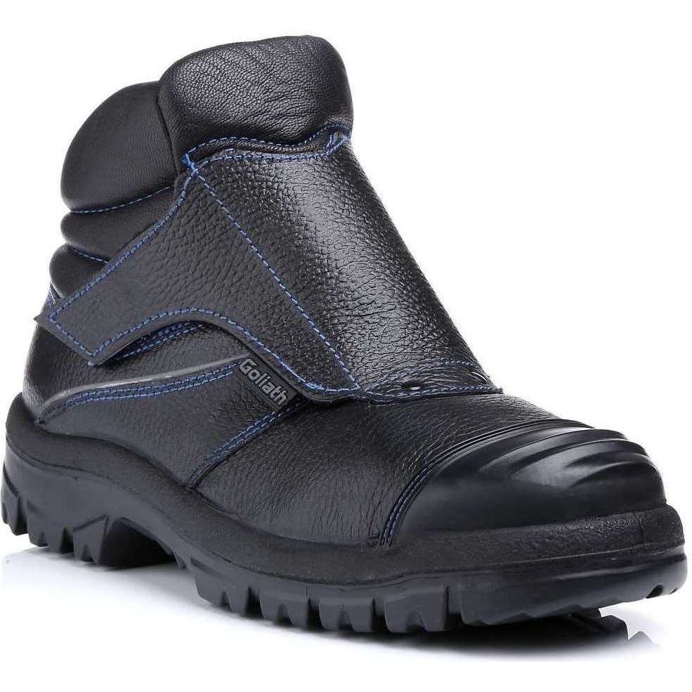 Spark welding boot. Heavy duty chrome tanned leather. Flame resistant Dual Density Rubber injected sole unit heat resistant to 300°C. SRC slip resistance rating. Injection soling process ensures for a reliable bond between the upper and the sole. Quick release velco flap. Moisture wicking textile lining. Steel toe cap resistant to 200 joules and nail-proof textile L-Protection® midsole to protect from sharp objects.