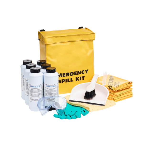 - Laboratory spill kit suitable for the containment, clean-up and disposal of acid spills