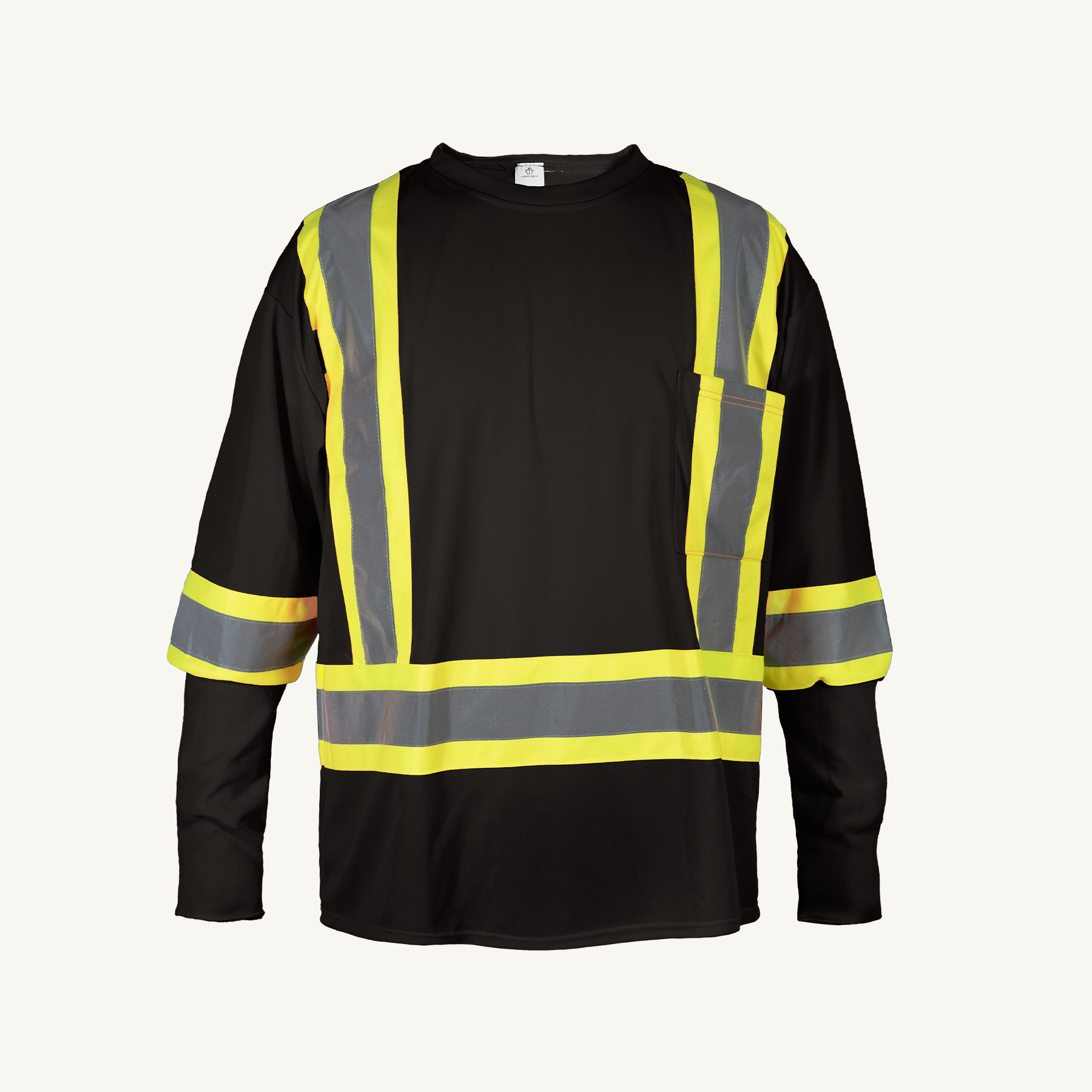 Superior TSKP1T Black hi-viz shirt with light cut-resistant sleeves