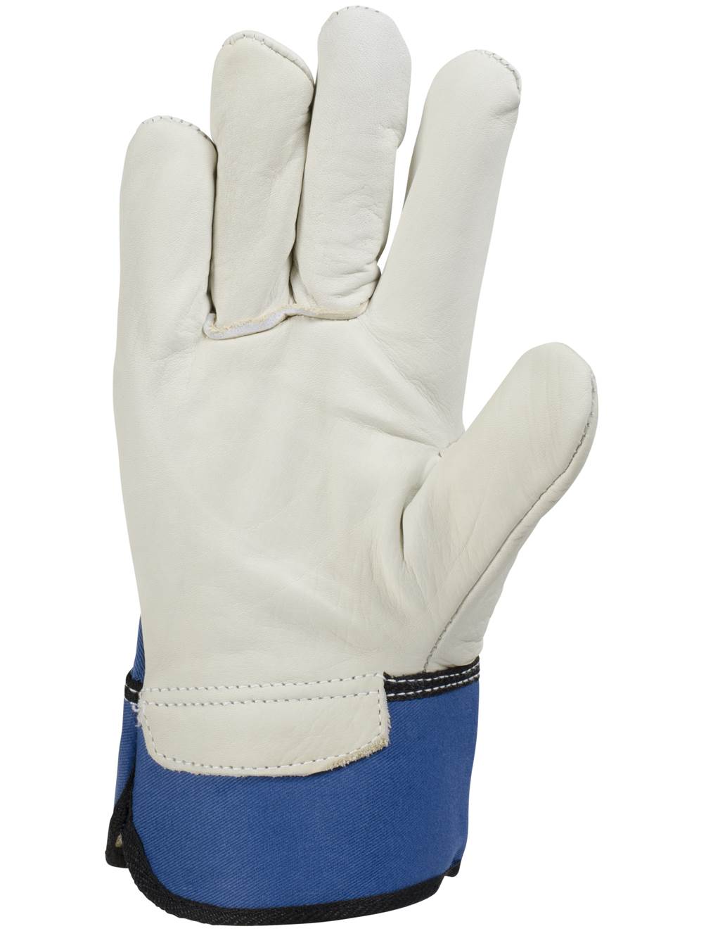 Elasticated back for better fit. Safety cuff provides better protection to wrist. Modern blue and beige colours.EN 388:2016, 3131X