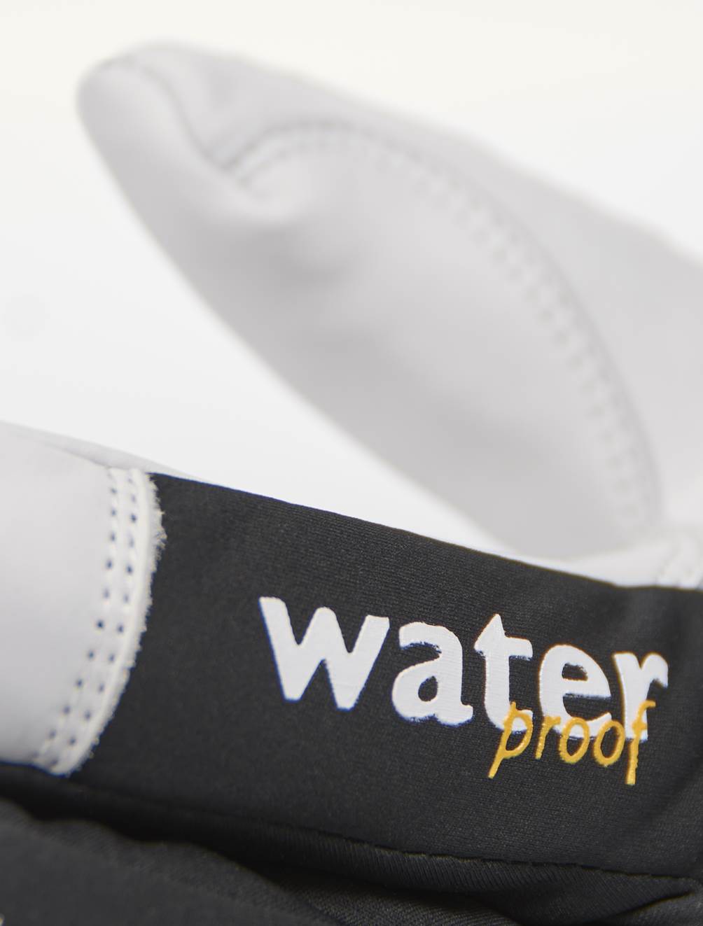 Waterproof, extra long, reinforced fingers and thumb, wind and waterproof back, pre-curved fingers;