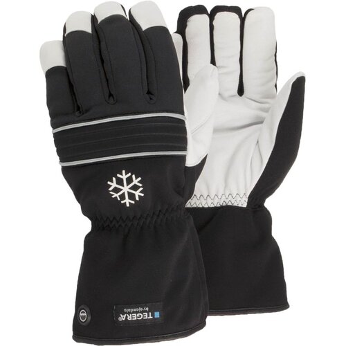 Leather glove, Winter-lined, 0,7-0,8 mm, Full grain cowhide, Polyester, Neoprene, Thinsulate™ 150g, Cat. II, Black, white, Wind and waterproof back, Waterproof, Elasticated 360°, for allround work.