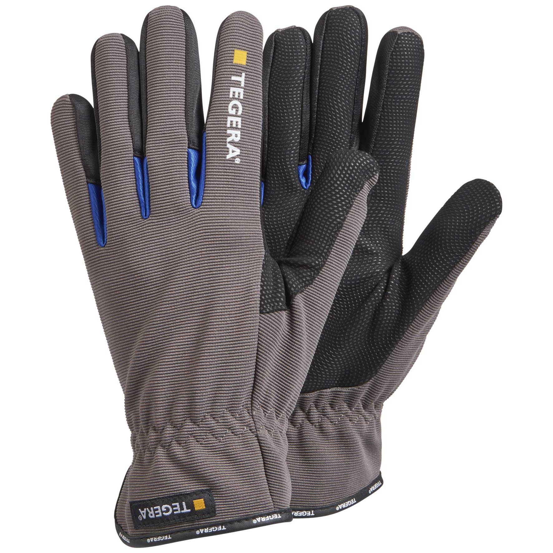 Synthetic leather glove, Unlined, 0,7 mm, Synthetic leather, Polyester, Cat. II, Grey, black, blue, Chrome free, Elasticated 360°, for allround work
