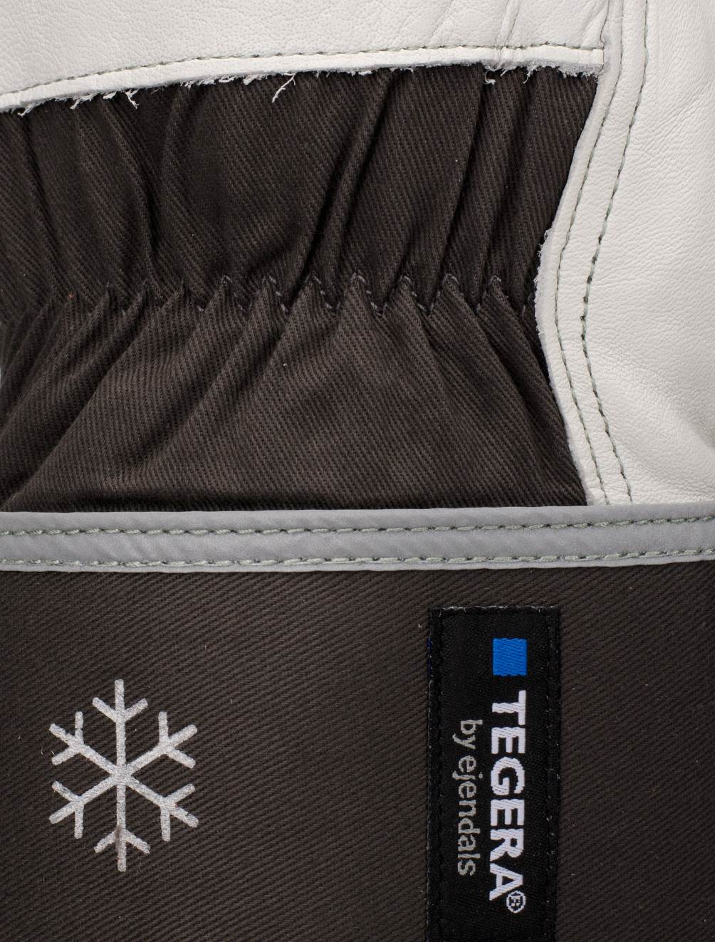 Leather glove, Winter-lined, 1,2-1,4 mm, Full grain oxhide of top quality, Cotton, Fleece, Cat. II, Grey, white, Reinforced fingers and thumb, Water repellent palm, Elasticated 180°, for heavy work