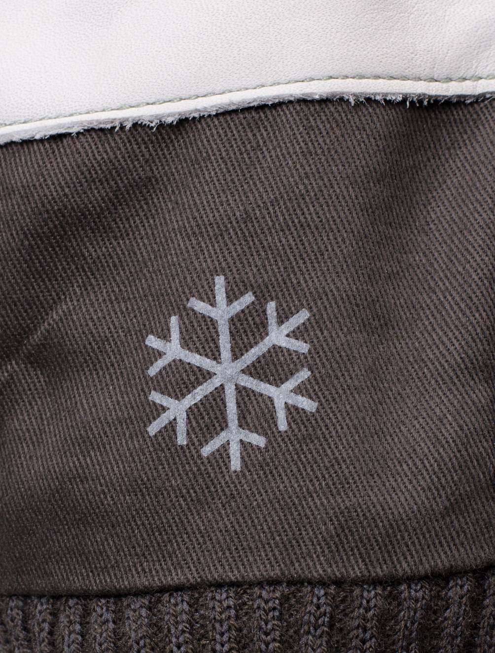 Leather glove, Winter-lined, 1,0-1,2 mm, Full grain oxhide, Cotton, Fleece, Cat. II, Grey, white, Reinforced index finger, Reinforced fingers and thumb, for heavy work