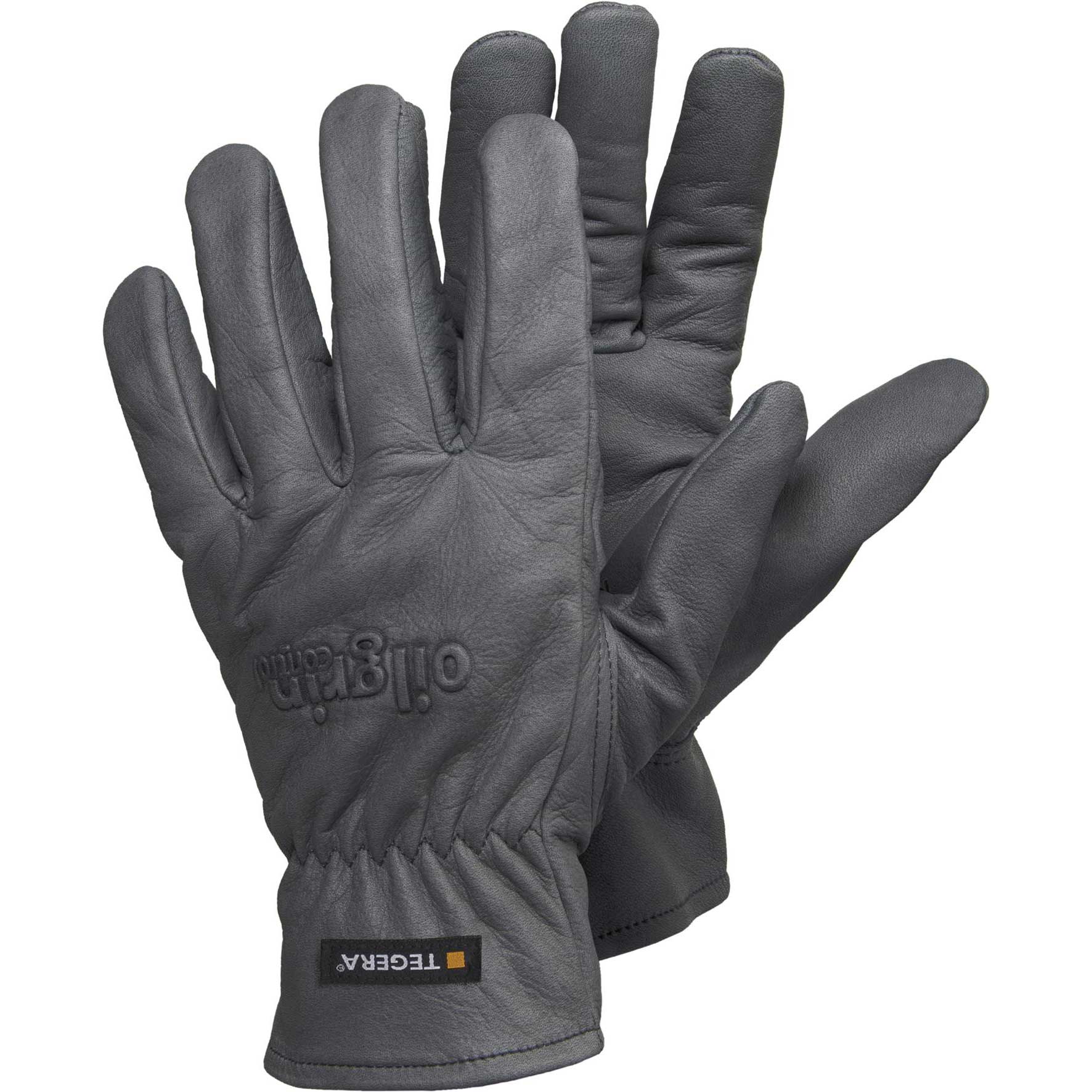 Leather glove, 0,7-0,8 mm, Full grain cowhide, Polyester, Cat. II, Grey, black, Water and oil repellent palm, Withstands contact heat up to 100°C, Elasticated 180°, for fine assembly work