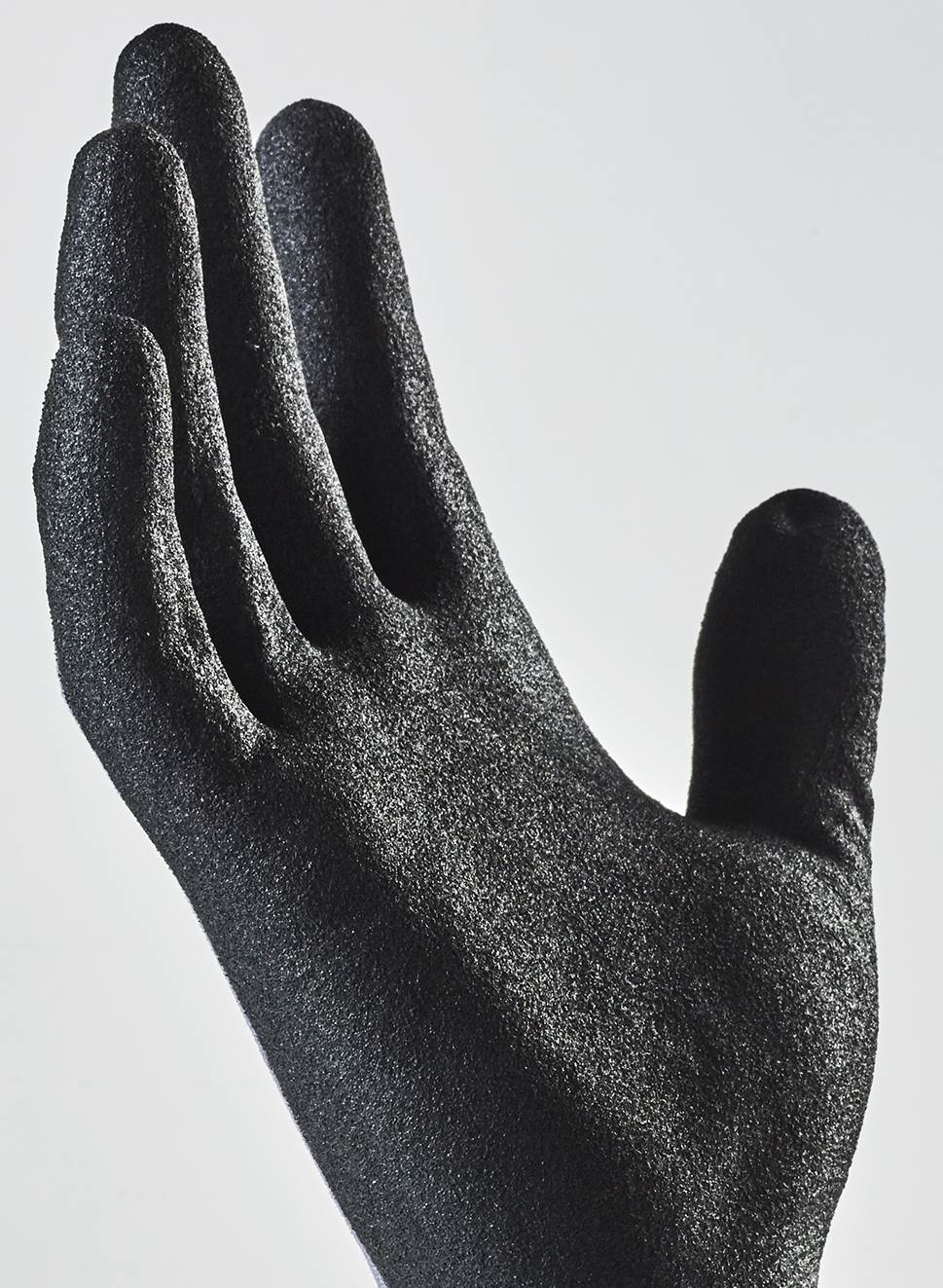 Synthetic glove, Nitrile, Palm-dipped, Lycra®, Nylon, 15 gg, Sandy finish, Cat. II, Black, grey, Oil and grease resistant palm, for assembly work