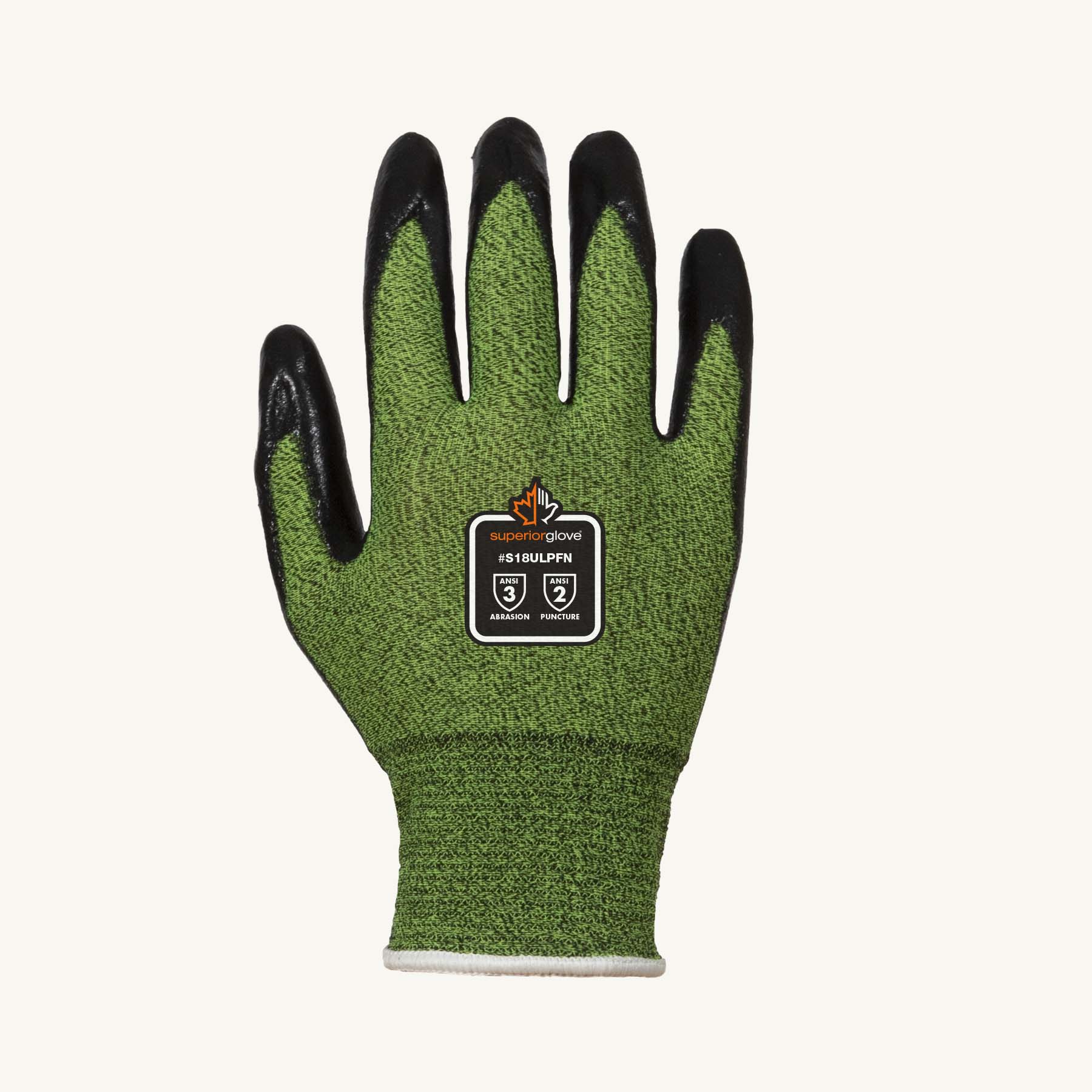 Our TenActiv® S18TXFTLP gloves feature leather palm patches with the industry’s maximum cut protection.
