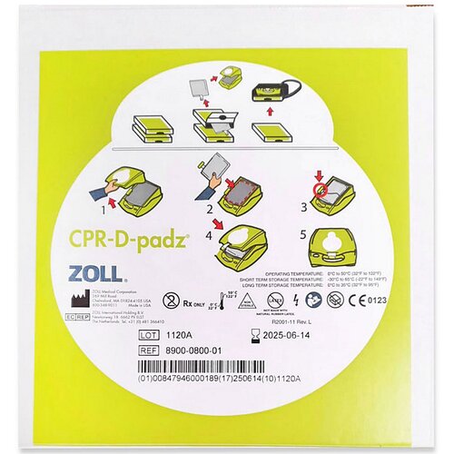 • Zoll CPR – D-PADZ Supplied with gloves, barrier mask, scissors, razor, wet wipe and dry wipe